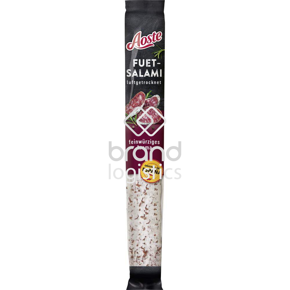 Der Name „Fuet“ stammt aus Katalonien und bedeutet „Peitsche“. Diese Bezeichnung spielt auf die lange, schlanke Form an, die das Produkt so unverwechselbar macht. Aoste folgt hier einer traditionellen Herstellung: Die Salami wird sorgfältig gereift und an der Luft getrocknet. Dadurch entwickelt sie ihren milden, ausgewogenen Geschmack mit einer feinen nussigen Note.