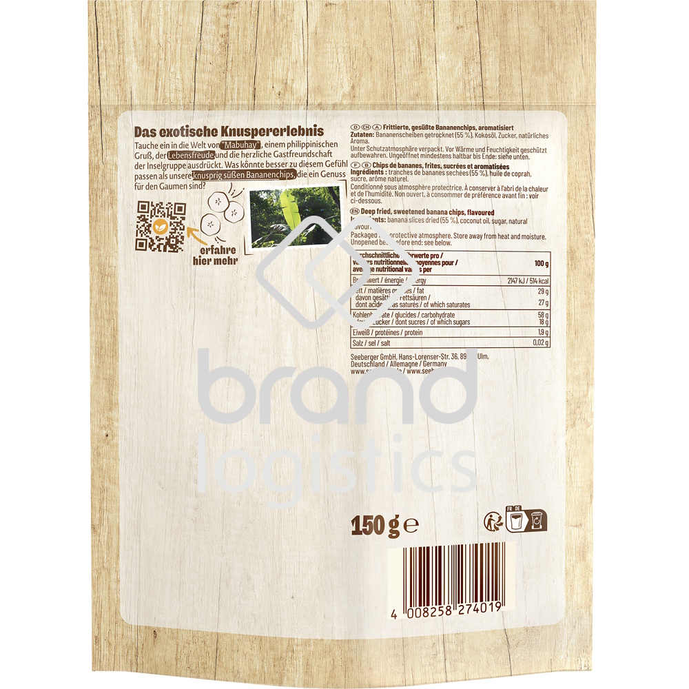 Die Seeberger Bananenchips sind besonders knackig und knusprig, weil sie schonend in Kokosöl geröstet werden.
