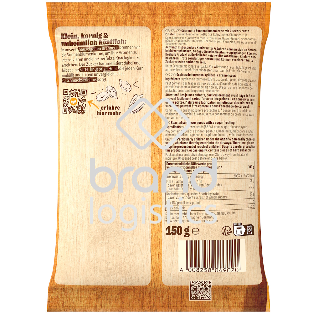 In unserer hauseigenen Brennerei brennen wir die Sonnenblumenkerne, um ihre Aromen zu intensivieren und eine perfekte Knackigkeit zu erreichen. Der Zucker karamellisiert dabei und bildet eine zarte, knusprige Hülle, die jeden Kern umhüllt und für ein unvergleichliches Geschmackserlebnis sorgt.